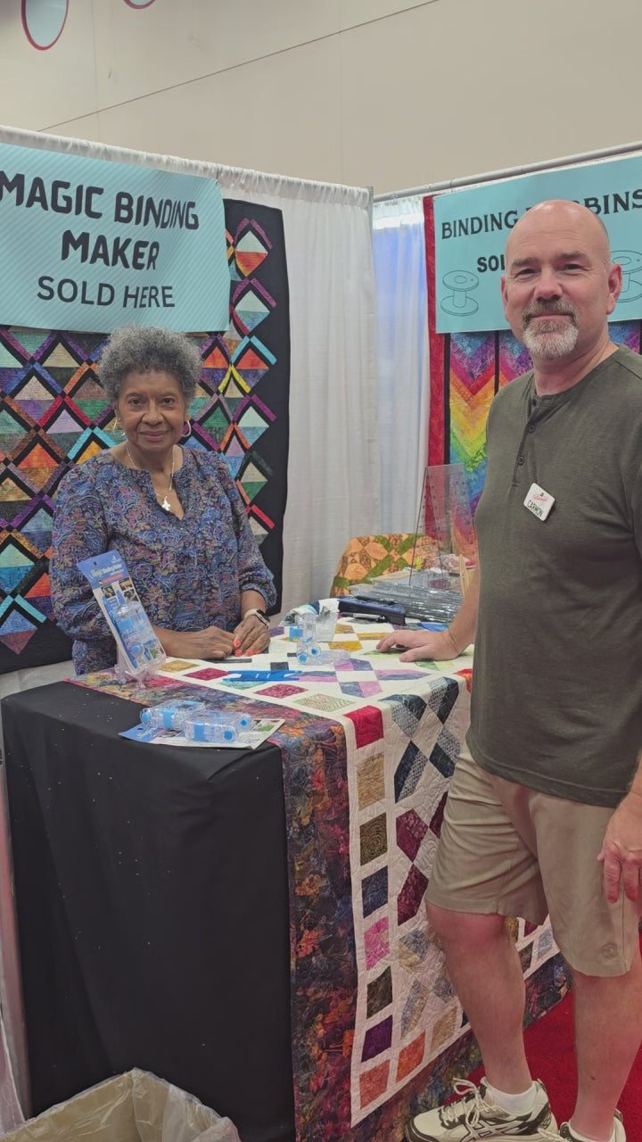 Create perfectly folded quilt binding without the hassle of pressing! This Magic Binding Maker takes the guesswork out of achieving consistent, sharp edges every time. Simply fold the end of your fabric through, then pull through for easy single folded binding for the ideal 2.50" width. No iron required. Say goodbye to uneven edges and tedious pressing. Perfect for quilters who want professional results with less effort and more confidence in their binding work.