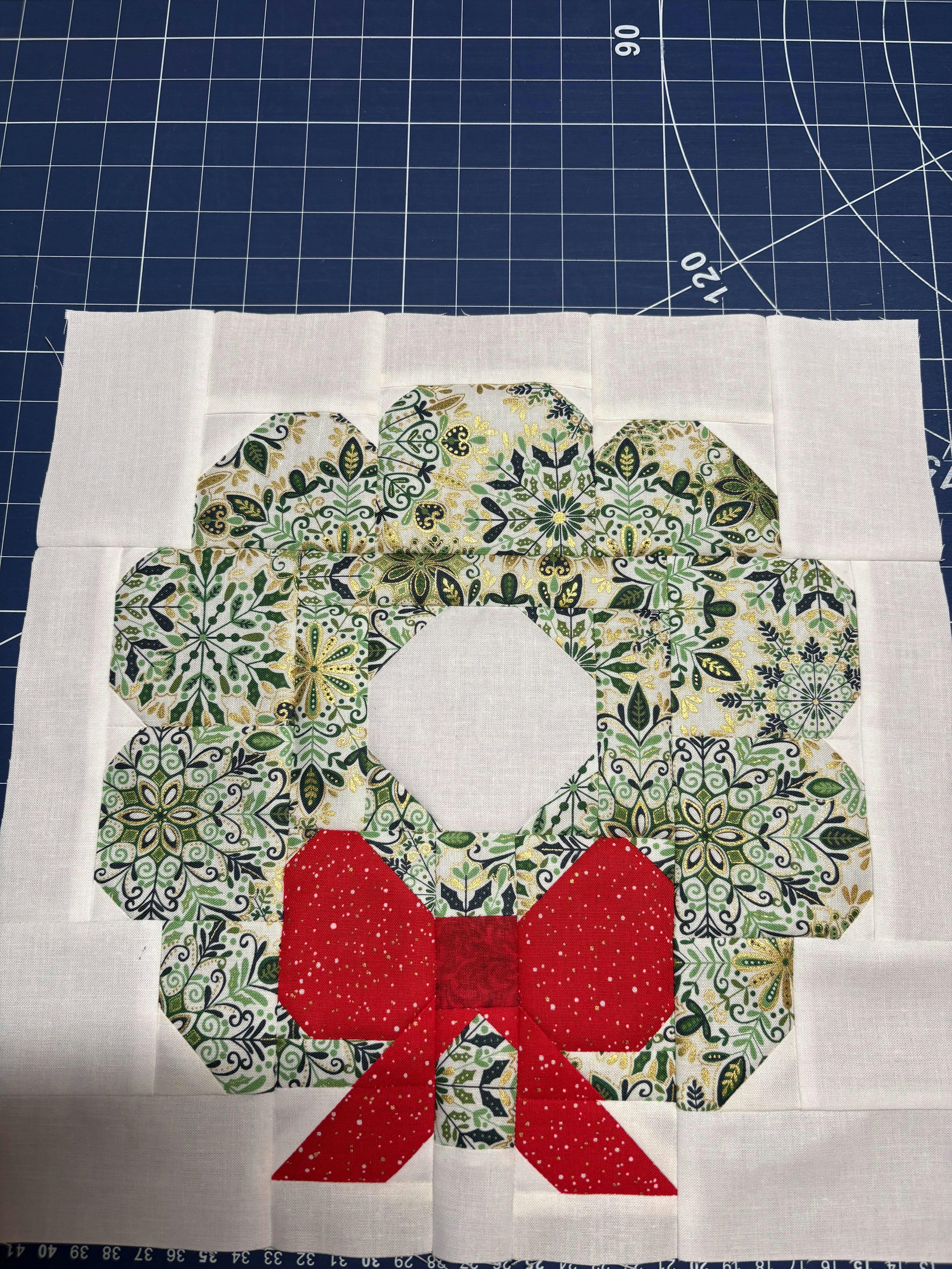 Pattern, Christmas Wreath Quilt Block by Burlap and Blossom (digital download)